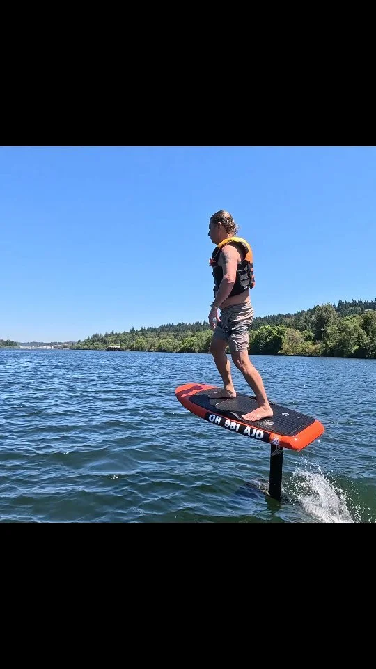 Hey there! My name is Miles. This all started after seeing a video on Youtube in which a man was efoiling through a city at sunrise, gliding so fast and effortless. It was so calm and serene. I thought “I need this!” So I searched my area, but nothing came up. A few years later I tried again and found a guy in Washington doing lessons, booked asap, and had such an incredible time. I loved the quiet, the speed, and the feeling of flying. So I got some boards and started Efoil PDX.